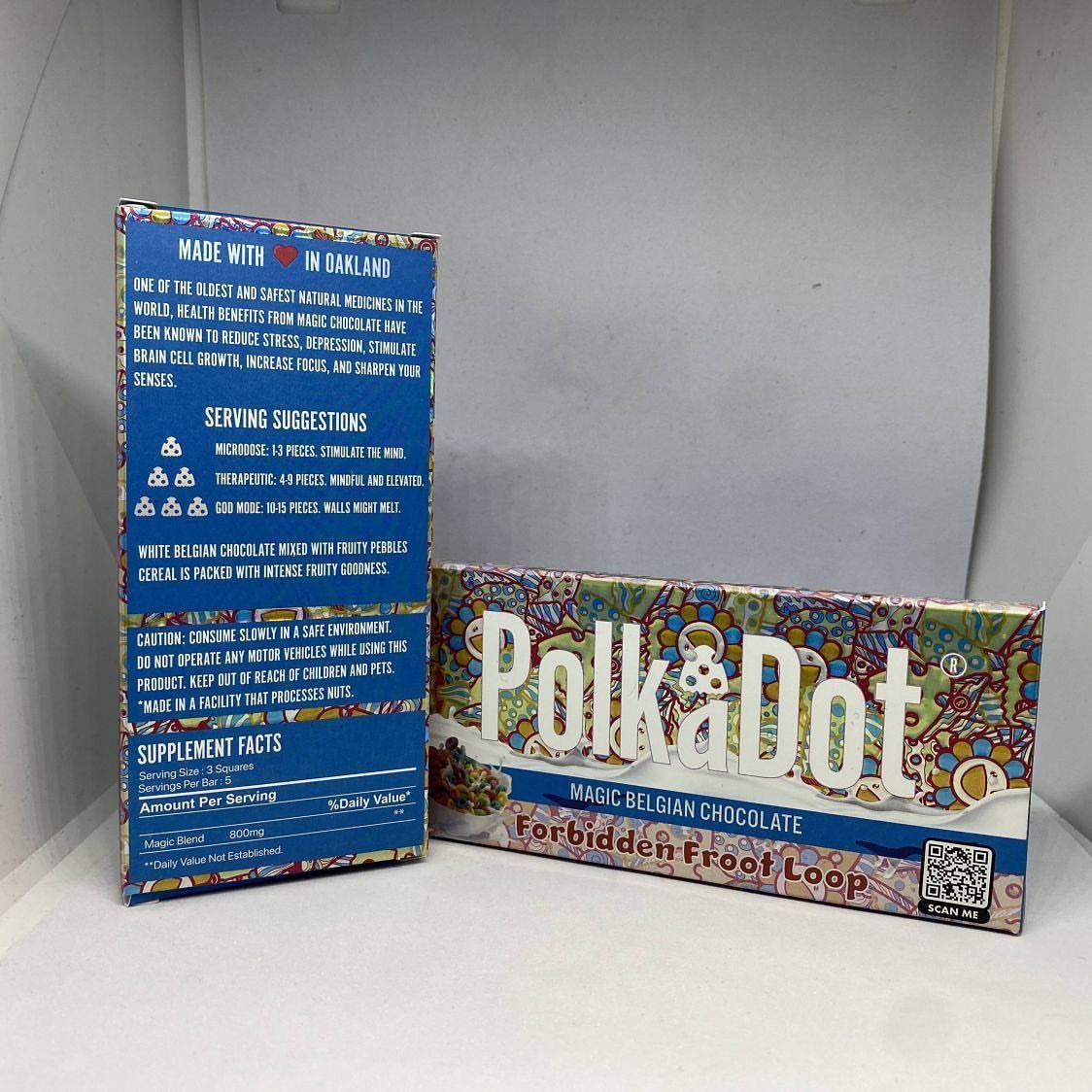 The PolkaDot Forbidden Froot Magic Belgian Chocolate is a delicious and nutritious treat that combines the goodness of premium Belgian chocolate with the powerful health benefits of mushrooms. This unique chocolate is made with a blend of organic cacao, dried fruits, and a special blend of mushroom extracts.